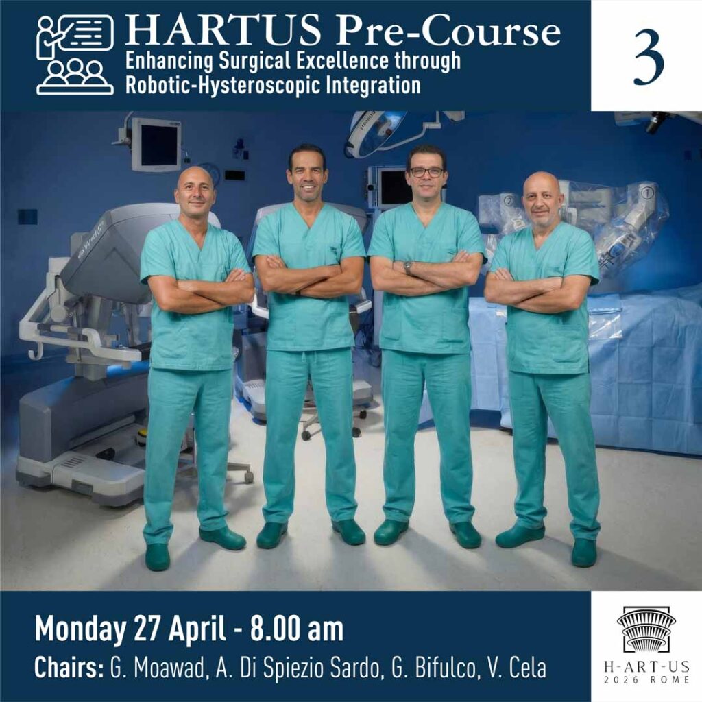 Before the main congress begins, HARTUS offers an exclusive series of intensive pre-courses designed for clinicians who want to elevate their expertise, refine their surgical skills, and integrate innovation into daily practice. Each pre-course has been carefully structured to provide a balanced combination of scientific evidence, practical training, interactive discussion, and hands-on experience. From advanced hysteroscopy and robotic integration to reproductive medicine and artificial intelligence, these sessions are not simply lectures, they are immersive educational experiences.